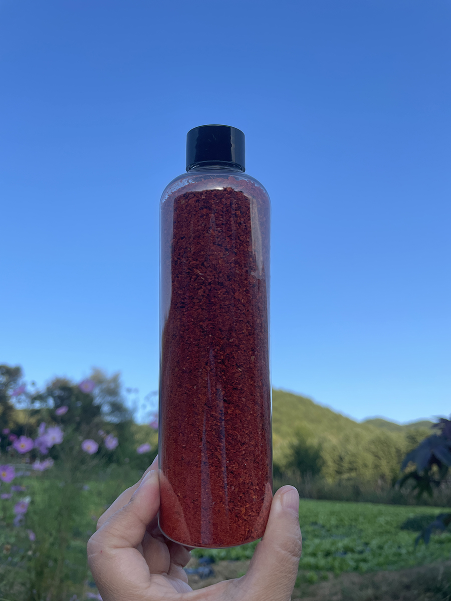 청양고추로 만든 청양고춧가루가 아니라, 일반고추로 잘 익혀서 만들었어요. 당연히 노농약, 저스트 자연스럽게!